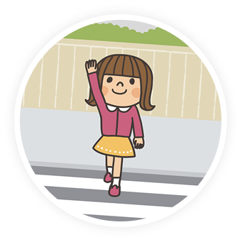 お子さまと道路を歩き、大人が手本となって声がけをしながら日常生活の中で身に付けさせましょう。