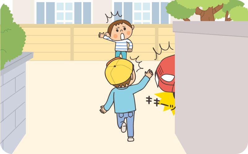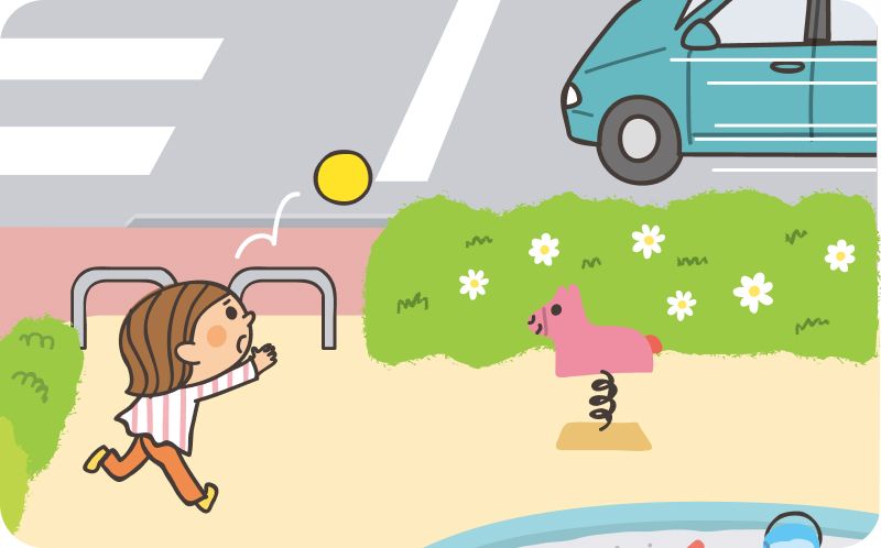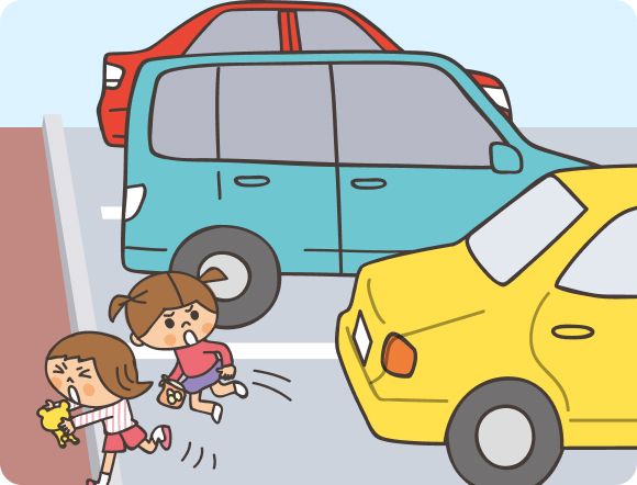 車が通る道路や車が出入りする駐車場で遊ぶのはとても危険な行為です。遊びに夢中になって車が接近していても気づかないことが多く、事故につながります。