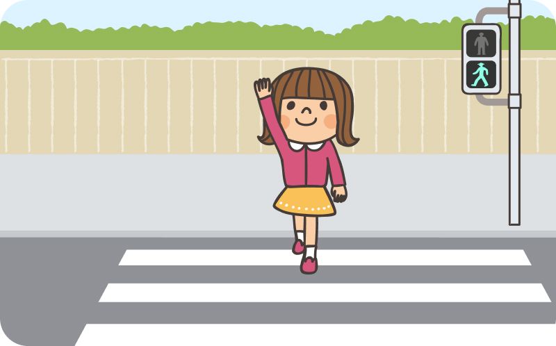 たとえ信号機がなくても、横断歩道のある場所では「止まる」「見る」「確かめる」を徹底させましょう。また、近くに横断歩道があるときは、横断歩道以外の場所を渡ってはいけません。