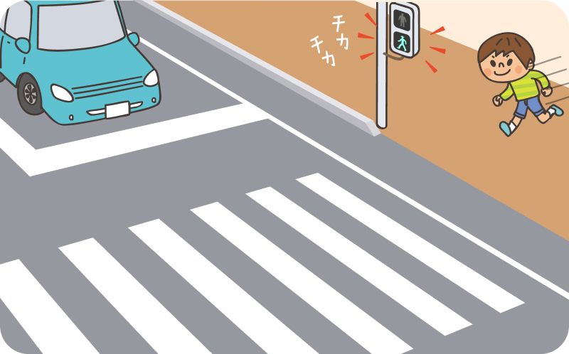 走ったり、友達とふざけたり、遊びながら渡ると車が近づいていることに気づかず危険な上、他の歩行者などの妨げにもなります。
