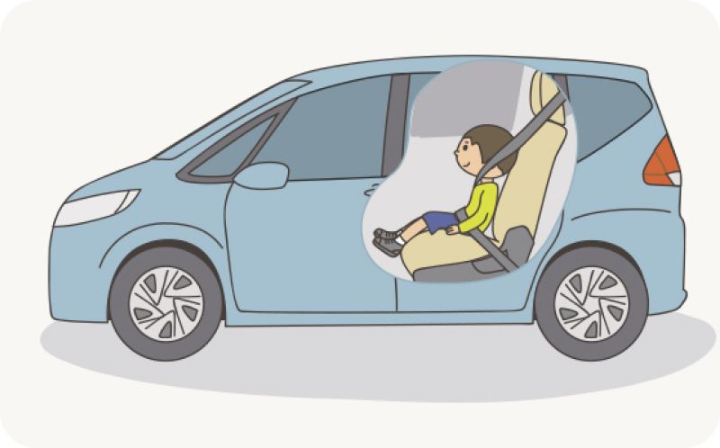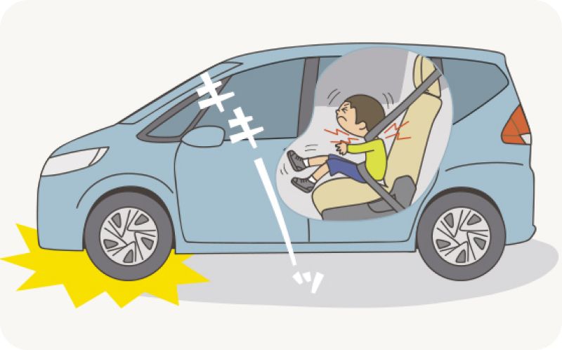 お子さまがジュニアシートを使用しないで車に乗っていると、シートベルトを正しく着用できていない状態になり、急ブレーキを踏んだり、万が一衝突事故を起こしたときに大きな危険があります。