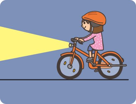 自転車に乗る前にライトが点くか、反射器材が壊れていないかを点検しましょう。ライトを点けると前が見えやすくなるだけでなく、車からも発見してもらいやすくなり、自身の事故防止につながります。