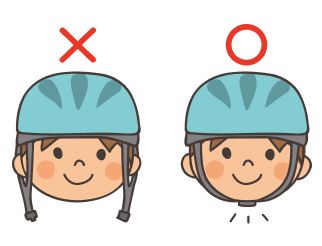 ヘルメットはただかぶっているだけでは意味がありません。しっかりあご紐をしめて、もしものときに頭部を守れるようにしましょう。