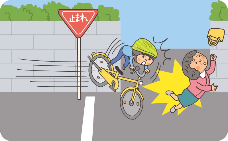 自転車乗車中の交通事故は、ときに自分がケガをするだけではなく、相手にケガをさせる危険があります。自転車乗車中は常に周りを確認することが大切です。