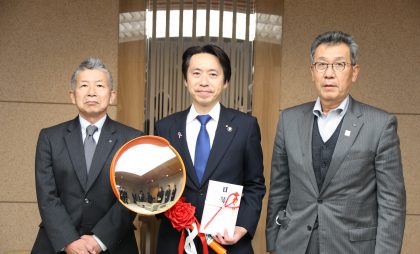 獣害を防ぎ農業経営安定化のため、獣害対策資材の購入資金を贈呈