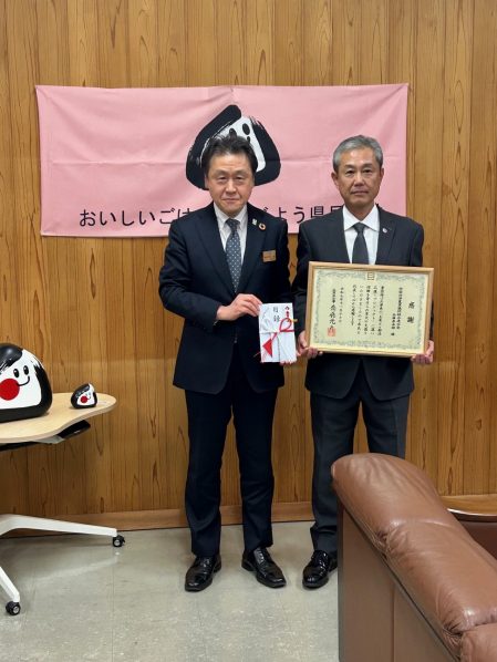 令和6年1月、「自然災害発生時の高齢者等の避難困難者の避難がスムーズに行われるように、個別避難計画の策定をすすめて参りたい」と兵庫県知事感謝状をいただきました。