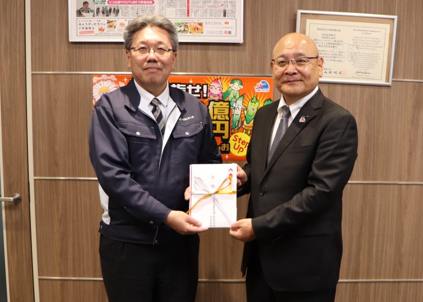 JA共済連高知は、農業・農村の過疎化や担い手の高齢化・担い手不足が進むなか、地域農業の振興を図るため、令和8年2月に株式会社土佐くろしお村村営みのりへ農業機械を寄贈しました。