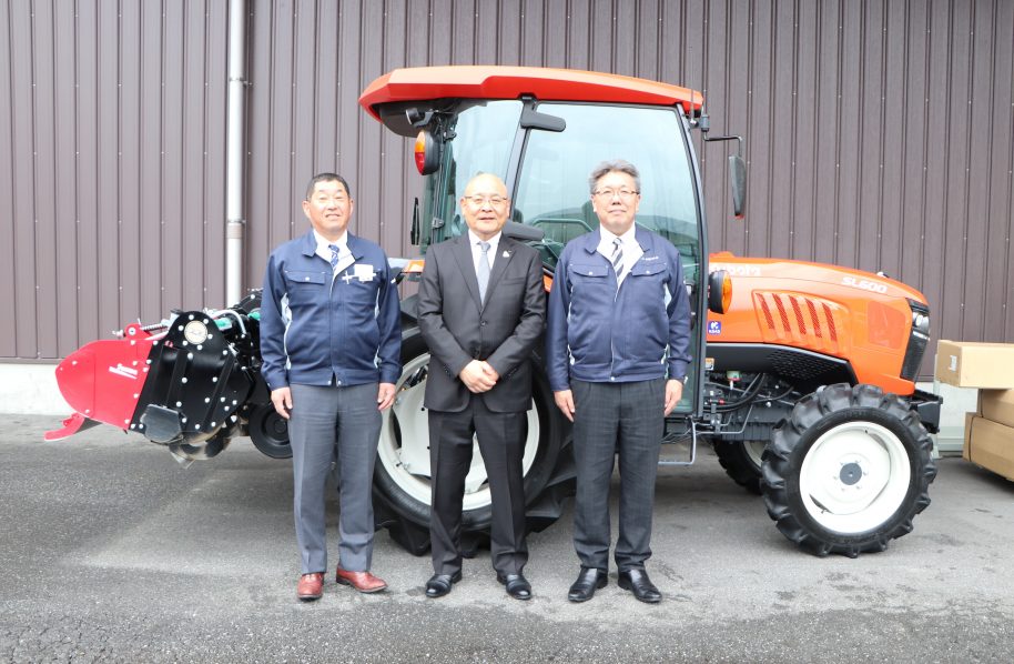 組合員やこれから農業に携わる新規就農者にとって、高騰している農業機械の購入費用が高い障壁となっているため、組合員が共同で活用いただけるトラクターおよび附属機器を寄贈することで地域農業の振興を図ることを目的に、今年度からの新たな取り組みとして実施しました。