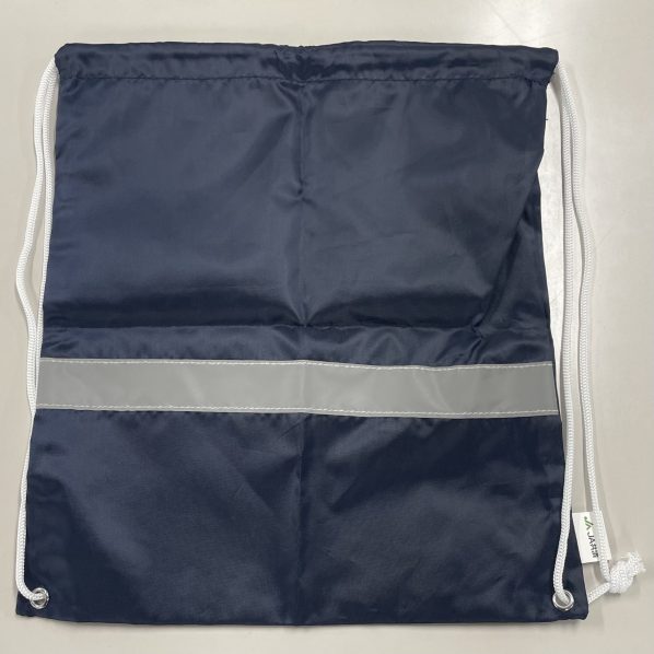 中学校新1年生全員へ贈呈された「反射材付きナップサック」