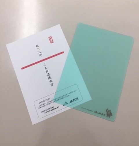 JA共済連大分では、次代を担うお子さまの妊娠・出産を祝福するため、県内の市町村へ「母子健康手帳ケース」を寄贈しました。また教育委員会へ新入学児童を対象に、地域の小・中学生の皆さまが住み慣れた地域で「健康で安心して暮らせる環境づくり」を支援するため、小学生へ「交通安全啓発メッセージ入り硬筆用下敷き」、中学生へ「反射材付きナップサック」を寄贈しました。
